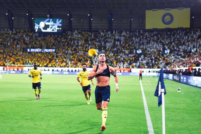 镭速体育10月19日讯 北京时间凌晨,沙特联赛第五轮,利雅得队战胜征服者哈萨队。葡萄牙巨星C罗在第60分钟打入职业生涯第949球。沙特阿拉伯《利雅得体育》指出,这一次,他为球迷呈现了一场独特的视觉盛宴,再次丰富了他难忘的庆祝活动库。就在一分钟前,C罗刚刚罚丢点球。但他并没有让沮丧情绪蔓延,迅速用强劲而沉重的“重炮”炸毁了敌人的目标。门将阿明·布哈里很无奈。这一次,他选择不以他标志性的“Siiii”吼叫来庆祝——这是他高高跳起、扭动身体、然后抱臂咆哮的经典形象。相反,他选择了更具象征意义的回应:脱下球衣,跑到场边,骄傲地站着,在看台上炫耀自己强壮的肌肉。沙特媒体指出,虽然“SIIII”是C罗最著名、最常用的庆祝动作,但他在职业生涯中也创造了许多难忘的“电影级”时刻,早已铭刻在全世界球迷的记忆中。比如,他在诺坎普球场要求对方球迷保持安静,双手交叉放在胸前闭上眼睛“睡觉”,进球后他掀起短裤指向大腿向世人展示自己强壮的肌肉。在皇马的职业生涯中,C罗多次在进球后脱掉大腹肌秀腹肌,最令人难忘的是2014年的欧冠决赛。在对阵马竞的比赛中打入第四粒进球锁定胜局后,他脱下球衣露出了标志性的六块腹肌,这成为了欧冠历史上的经典时刻。参加利雅得胜利后,C罗在进球后还数次与队友跳起了沙特传统的“Al-Ardah”(沙特舞蹈)。这位名人不仅充满激情,还体现了他对沙特文化的尊重和融合,赋予了庆祝活动更深层次的象征意义。